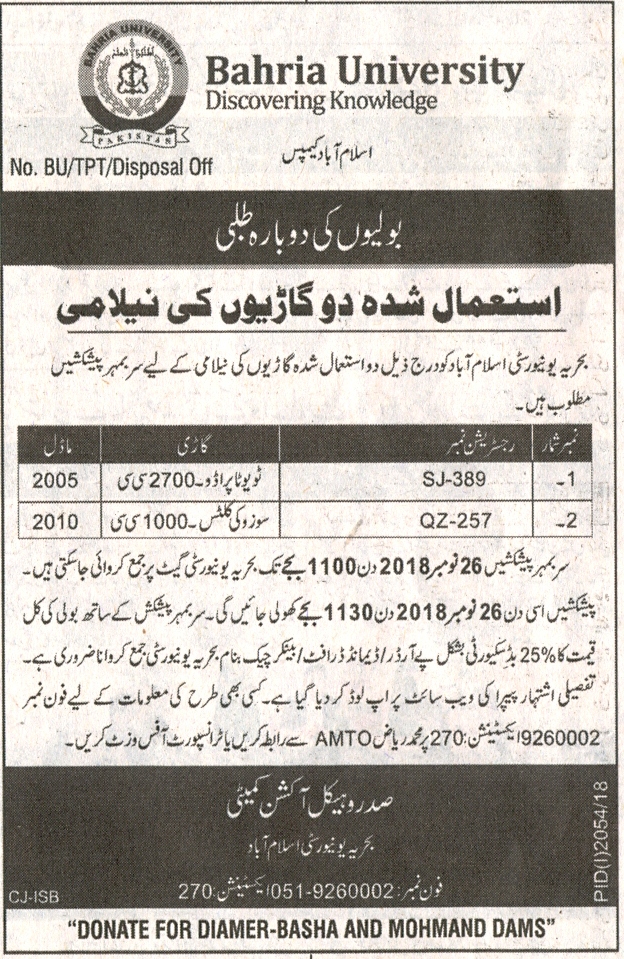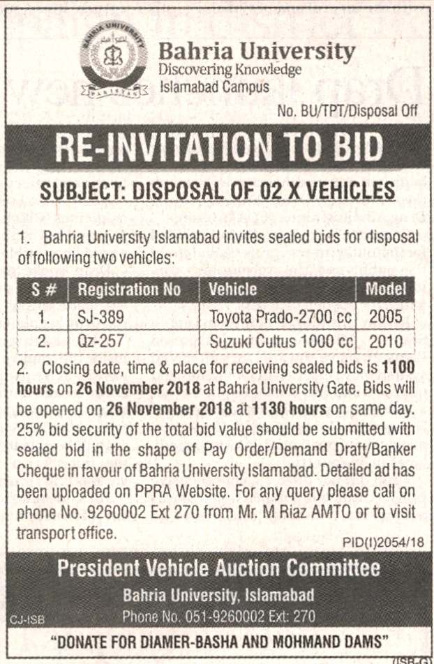 Re-Invitation to bid Disposal of 02x vehicles
